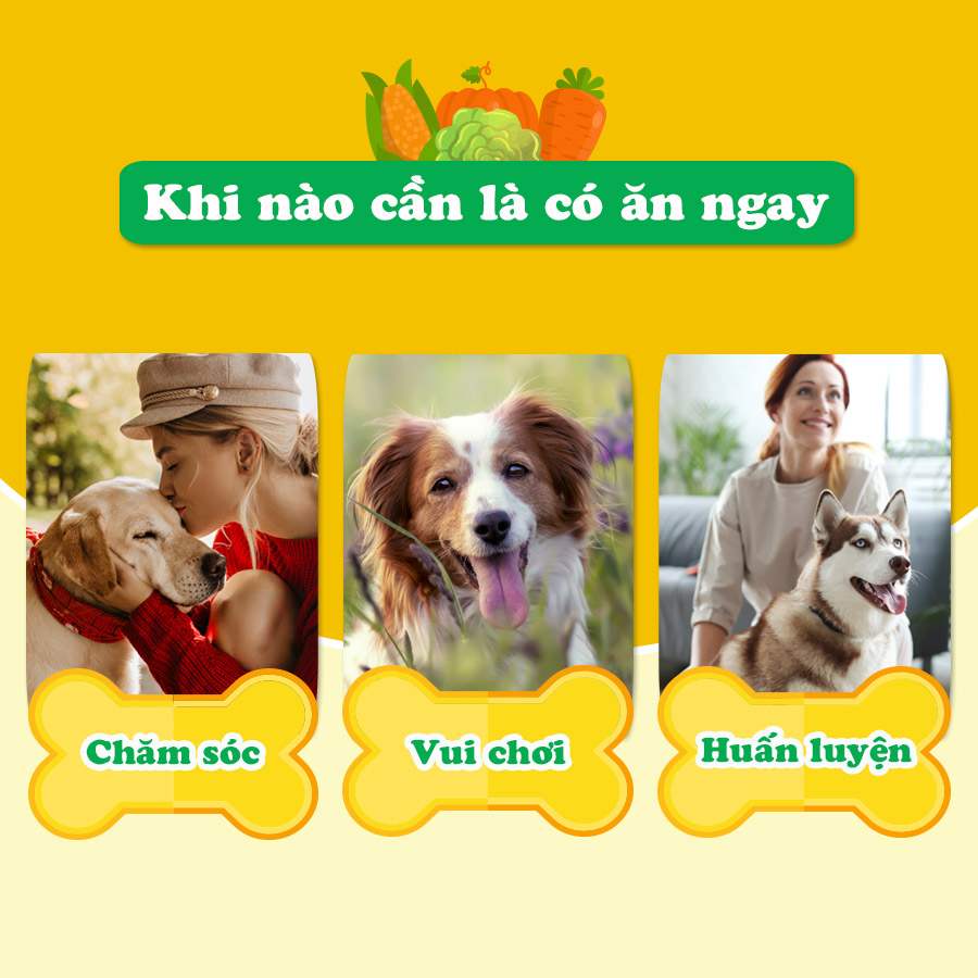 Bánh quy dinh dưỡng, có độ cứng phù hợp cho chó cưng, giòn tan khi nhai. Kết hợp 3 loại rau củ (cà rốt, rau bina, bí đỏ) cung cấp nhiều vitamin và khoáng chất. Ngoài ra còn chứa nhiều lợi khuẩn duy trì sức khỏe đường ruột.