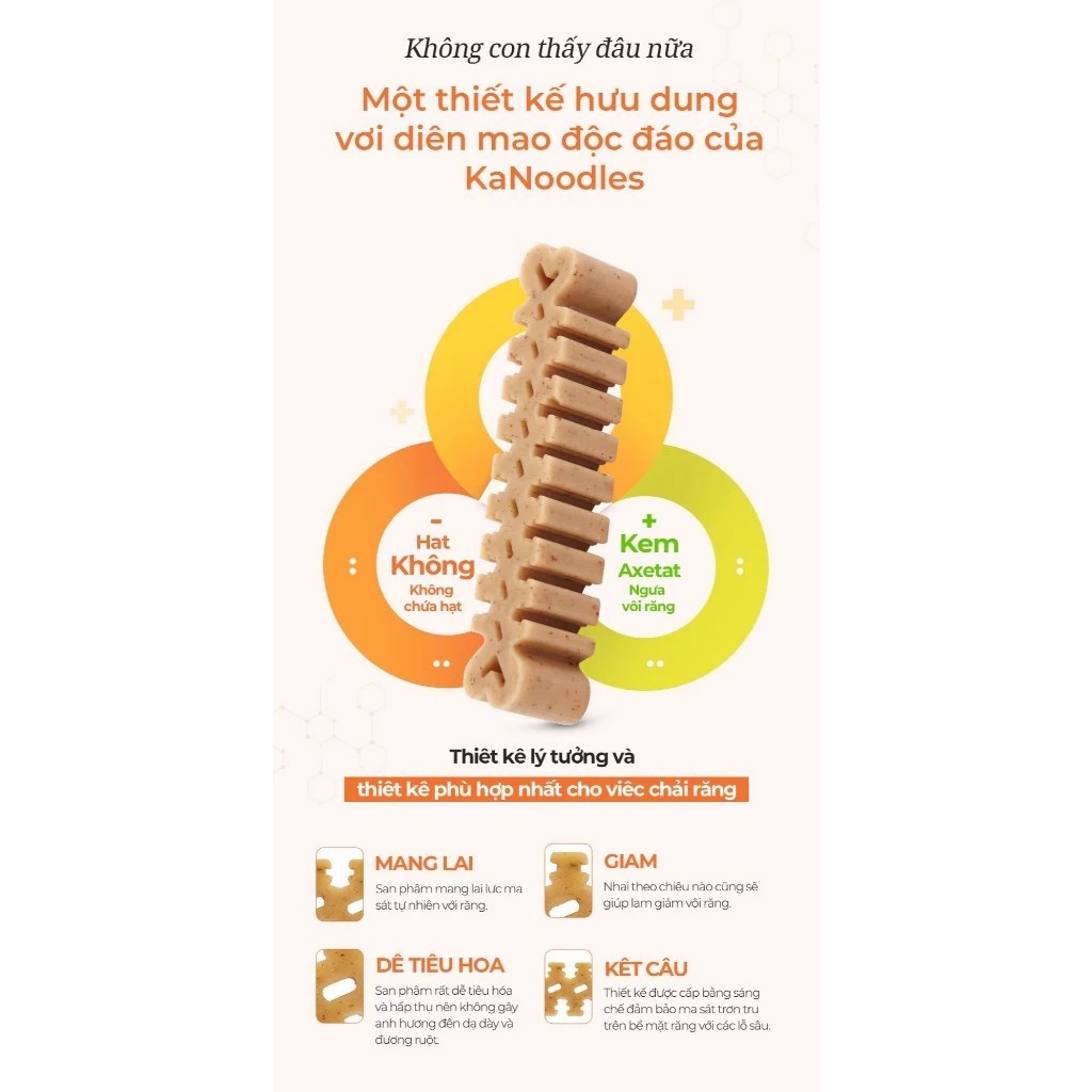 Kanoodles là dòng kẹo nhai nha khoa cao cấp đến từ thương hiệu Forcans (Hàn Quốc), được thiết kế đặc biệt để hỗ trợ chăm sóc răng miệng cho chó cưng. Sản phẩm kết hợp giữa khẩu vị thơm ngon và khả năng làm sạch răng hiệu quả, giúp loại bỏ mảng bám, cao răng và giảm mùi hôi miệng.