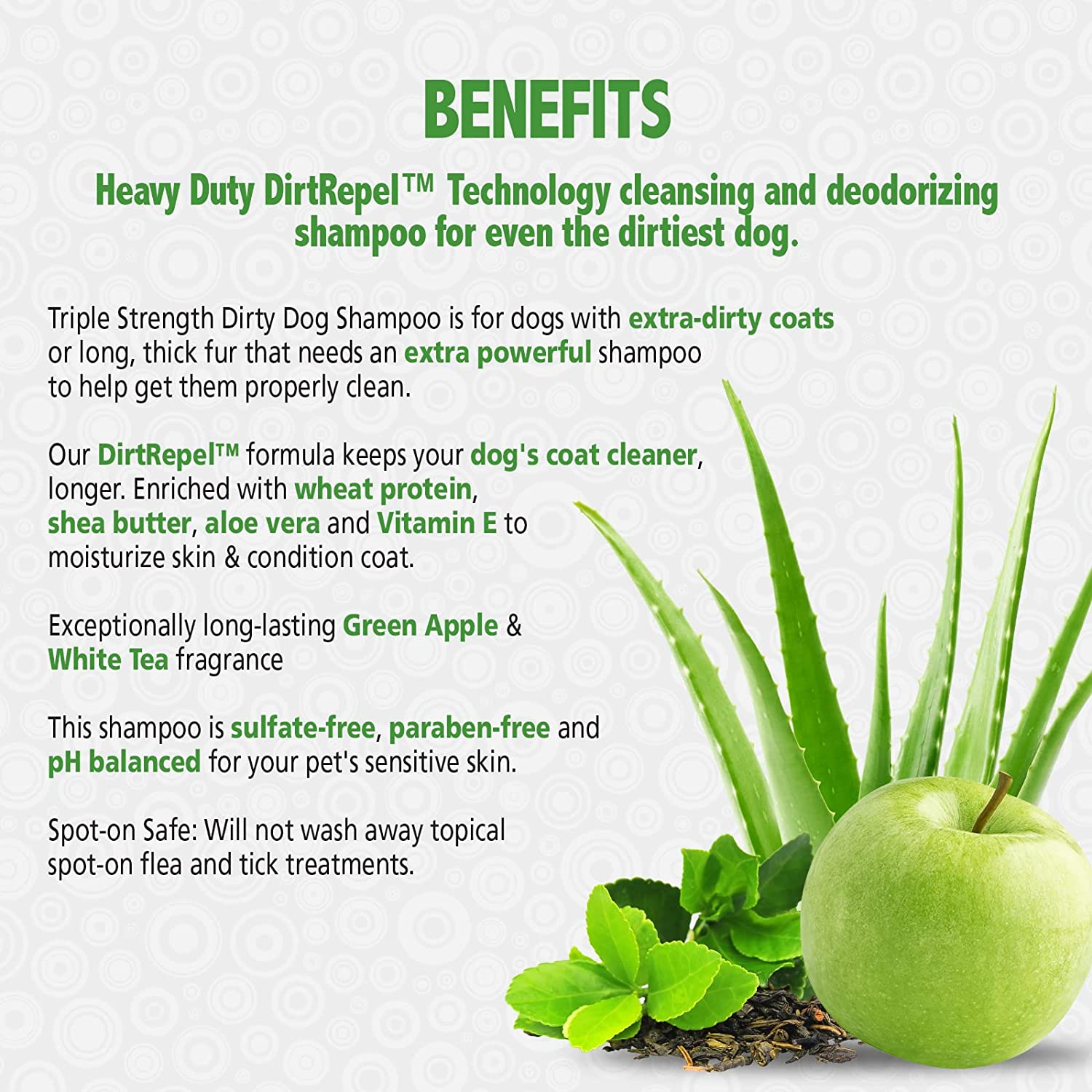 - FOR DIRTY AND SMELLY DOGS – With three times more active cleansing ingredients than other dog shampoos, Veterinary Formula Solutions Triple Strength Dirty Dog Concentrated Shampoo cleans and deodorizes the smelliest and dirtiest dogs