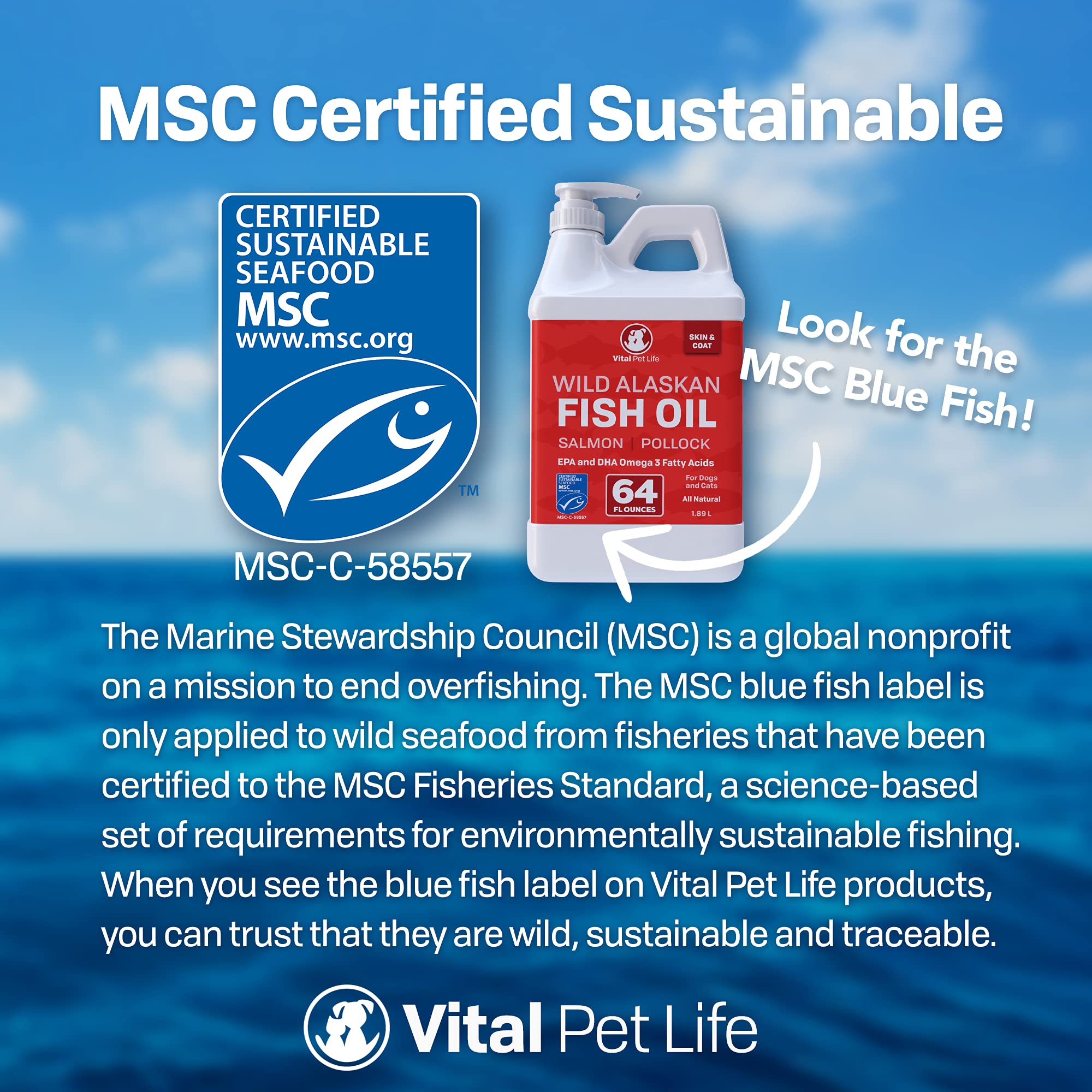 ✅ MSC ĐƯỢC CHỨNG NHẬN BỀN VỮNG – Dầu cá hồi của chúng tôi được 100% Marine Stewardship Council chứng nhận bền vững có nghĩa là chúng tôi đang giúp đảm bảo đại dương khỏe mạnh và bảo vệ nguồn cung cấp thủy sản trong tương lai.